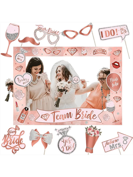 25pcs Bachelorette Party Rose Gold Photo Booth Props Set - Handheld Frame, Perfect for Bridal Showers & Wedding Celebrations