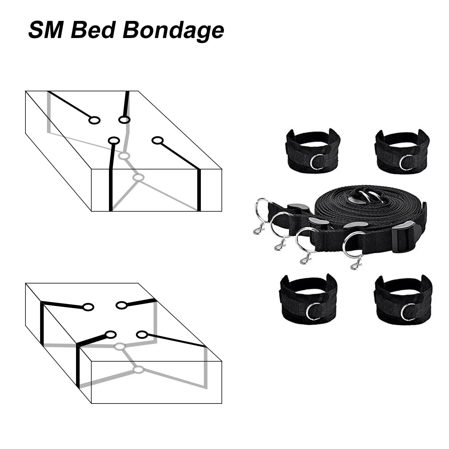 Vielseitiges Bondage-System: Dieses BDSM-Bondage-Set dient als umfassendes Fesselsystem für vielfältige Spielszenarien.