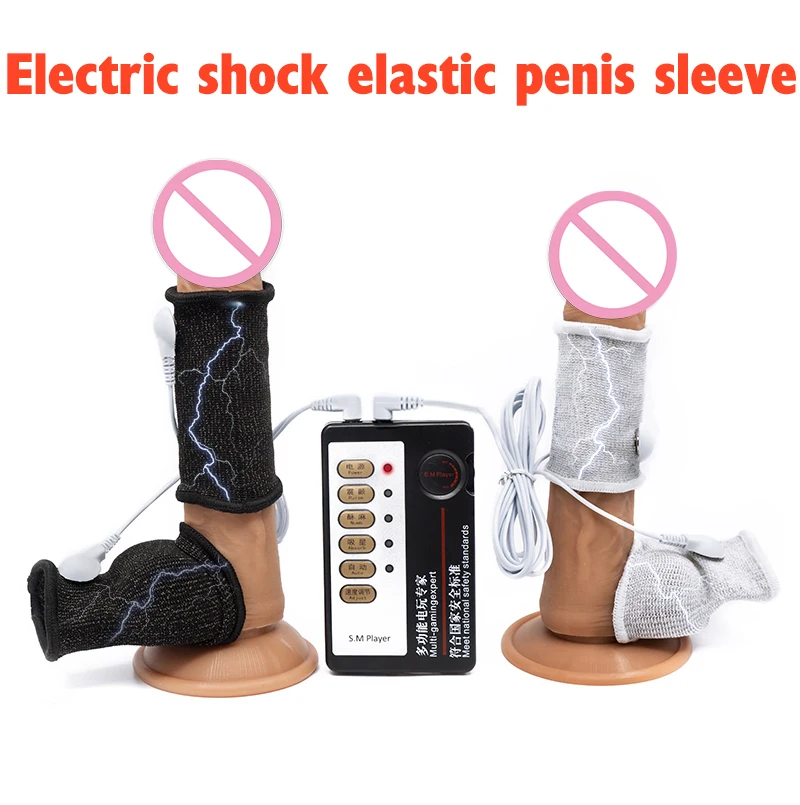 BDSM Elektroschock Leitfähige Faser Penishülle E-Stim Hodensackringe Elektrisches Spiel Penistherapie Vergrößerung Männliche Sexprodukte