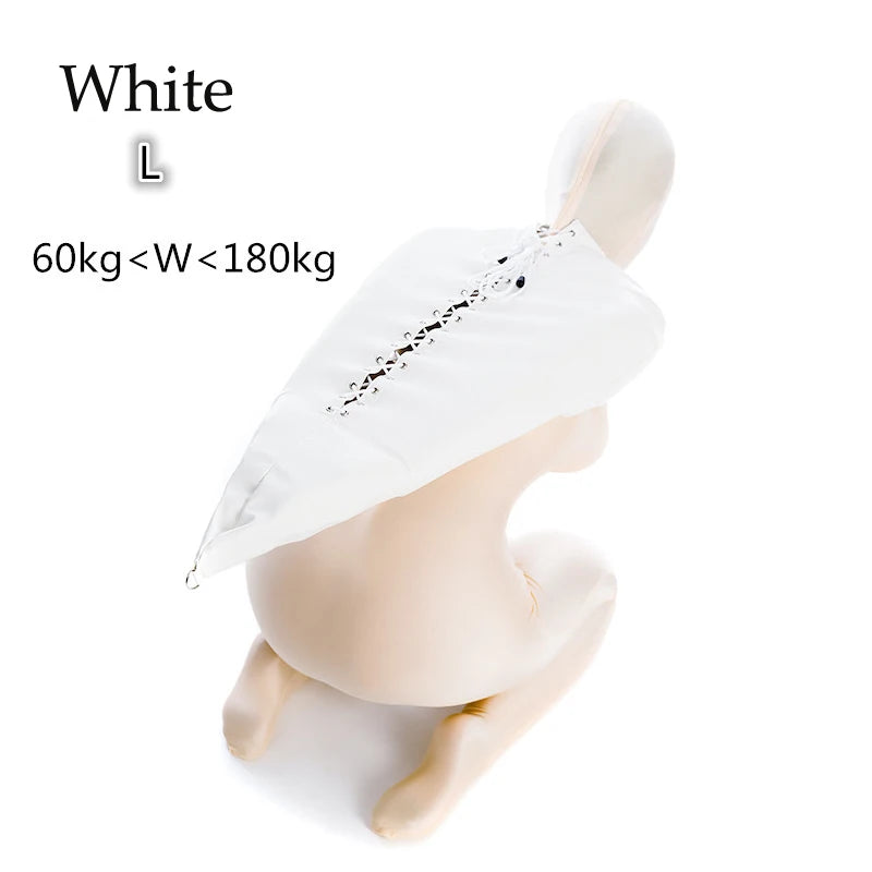 BDSM-Armbinder aus Leder, Zwangsjacke hinter dem Rücken, SM-Bondage-Handschuh, Sklavenhaubenmaske mit offenem Mund, Cosplay-Sexspielzeug für Erwachsene