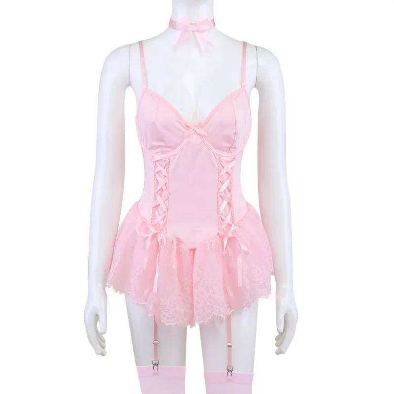 „Perfekt für OnlyFans-Inhalte, Themenpartys oder romantische Abende, die den Reiz des Korsetts mit zarten Spitzendetails verbinden.“