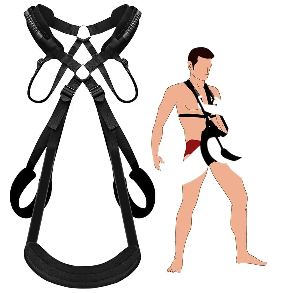Standing sex, against the wall lovin', zero-gravity hanky-panky? This shoulder strap body sex sling features comfortable handles for hanging. Durable yet soft material keeps you comfortable while playing. Strap up, grab your sexy lover the start the breathtakingly and exciting journey.