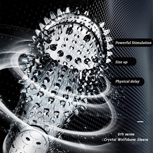 Condón Diente de Lobo Cristalino, Caja Individual, Gran Partícula, Funda para Pene, Anillo Extensor Reutilizable para Pene, Condones Eróticos para Hombres