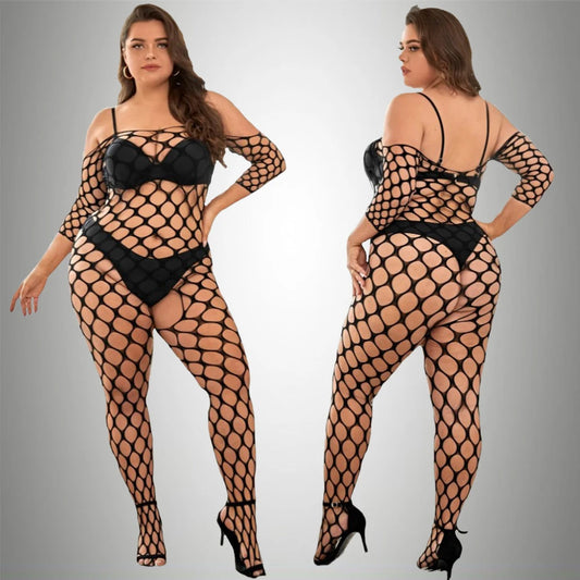 Lencería sexy de una pieza XXXL para mujer, ropa de dormir erótica, entrepierna abierta, medias de red, lencería erótica