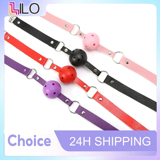 Mordaza de boca ajustable BDSM, bola de cuero sintético para adultos, juego de rol fetiche, accesorios para parejas, juguetes sexuales de bondage