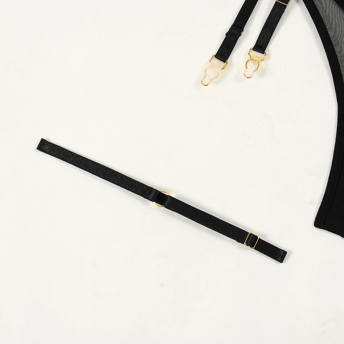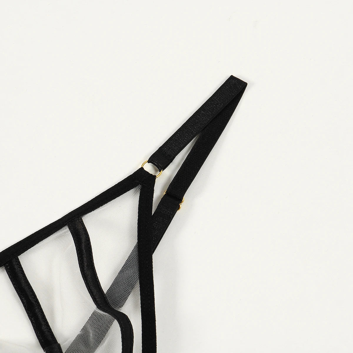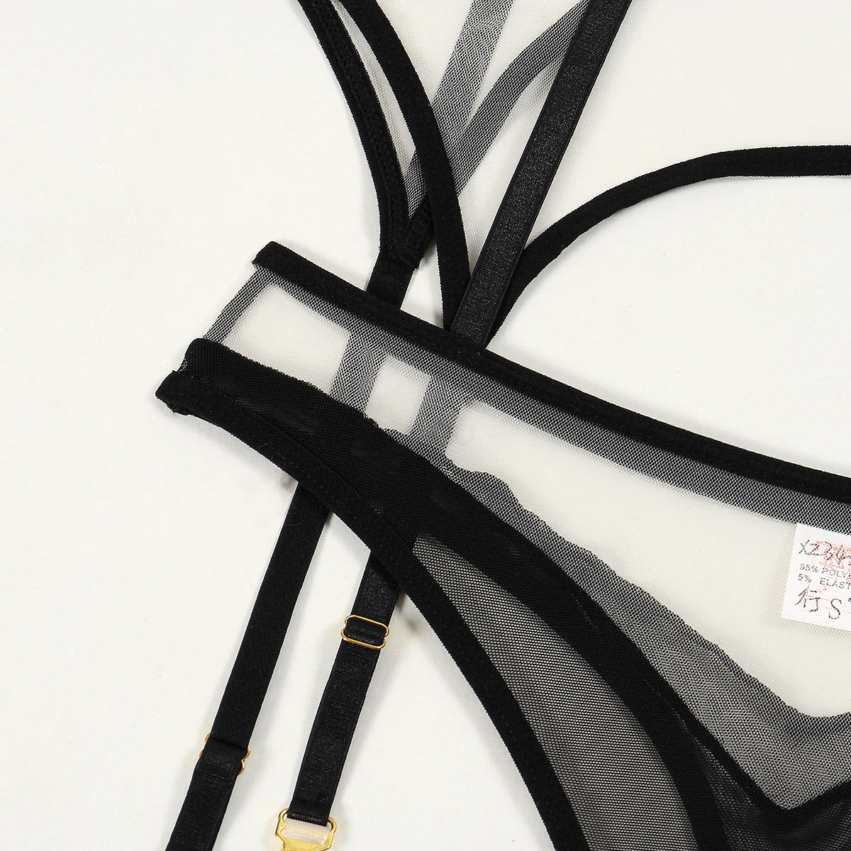 Conjunto de lencería erótica de cuatro piezas con copa triangular, sexy, de malla transparente, novedad de verano de 2024