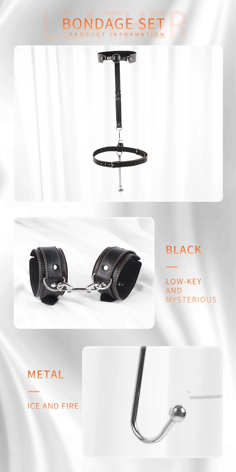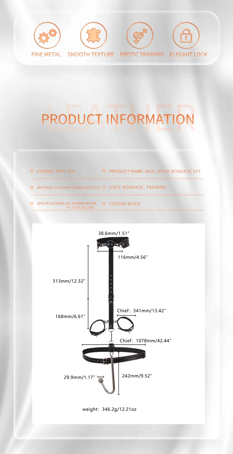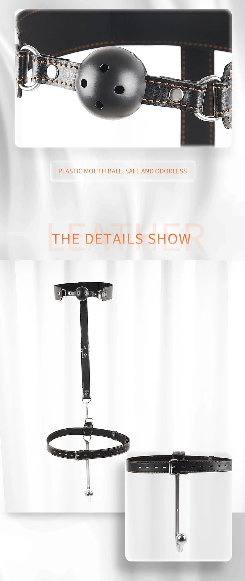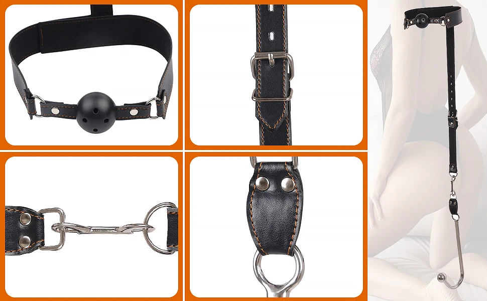 Juego de ganchos anales de cuero BDSM, posición de asistencia sexual, sujeción con gancho de metal, esposas con tapón bucal y cinturón, juguetes sexuales para adultos