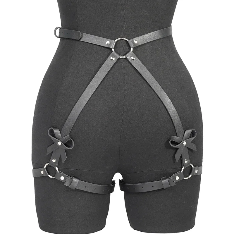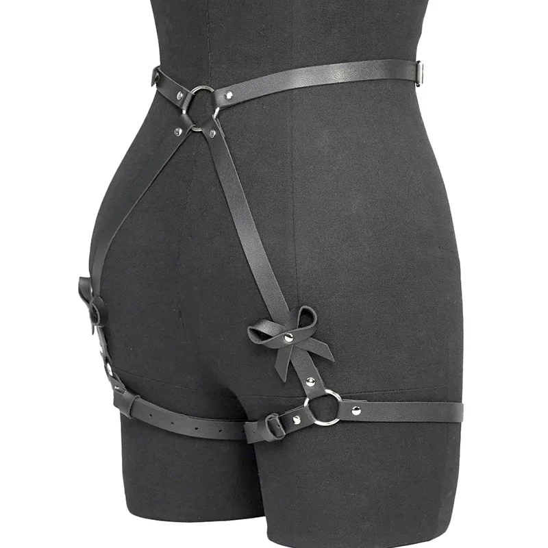 Arnés gótico BDSM de cuero sintético para glúteos y ligas, conjunto de lencería sexy para mujer, arnés de piernas para bondage corporal BDSM, conjuntos eróticos fetiche
