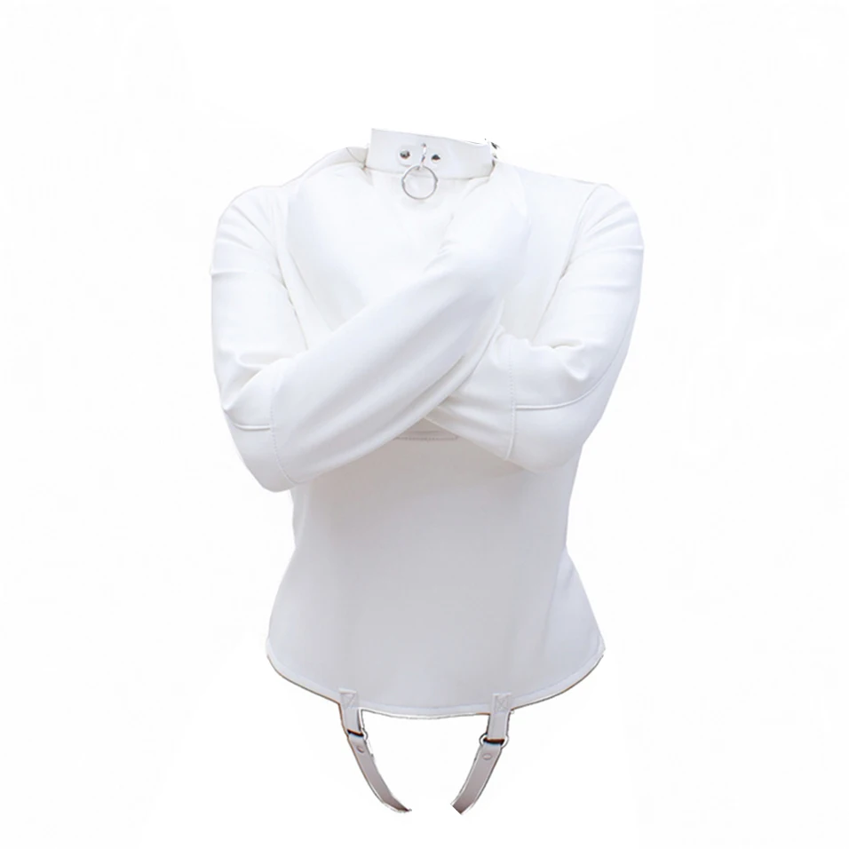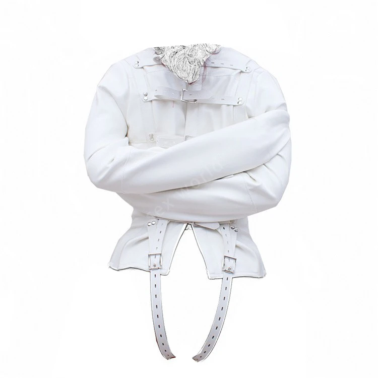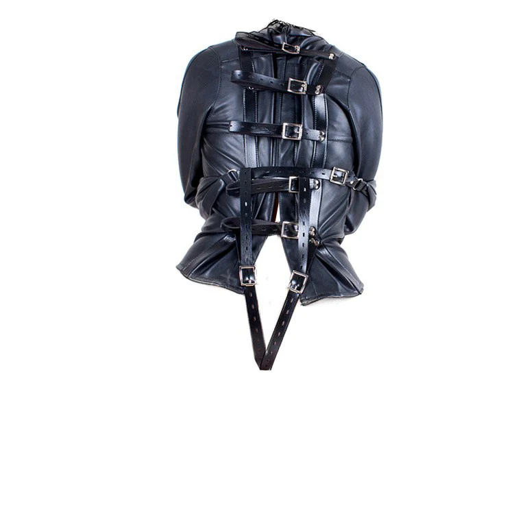 Característica: Esta resistente chaqueta de cuero sintético proporciona una sujeción ineludible. Las correas de cuero sintético totalmente ajustables se sujetan firmemente a las anillas metálicas en D. La chaqueta cuenta con una correa que pasa entre las piernas y se sujeta a la espalda, lo que impide que se escape. Esta chaqueta tiene mangas largas que se adaptan tanto a hombres como a mujeres. Las correas dobles en la entrepierna son una característica poco común que no se encuentra en la mayoría de las demás camisas de fuerza. Las correas dobles en las piernas impiden que el usuario se la suba por la cabeza y permiten el acceso a la entrepierna.