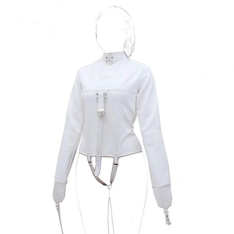 Camisa de fuerza de cuero para ataduras sexuales BDSM, disfraz sexy para cosplay, juguetes sexuales para mujeres