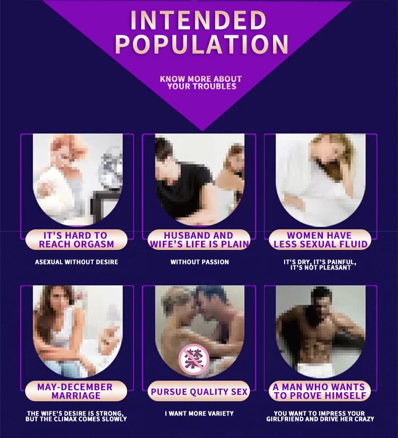 Personas aplicables 1. Dificultad para alcanzar el orgasmo, apatía sexual, falta de deseo 2. La vida entre marido y mujer es simple y no hay pasión después de mucho tiempo 3. La secreción de fluido sexual femenino es menor, en el dolor seco no hay placer 4. La búsqueda de sexo de alta calidad, juego de posiciones sexuales más, quiero ir al siguiente nivel