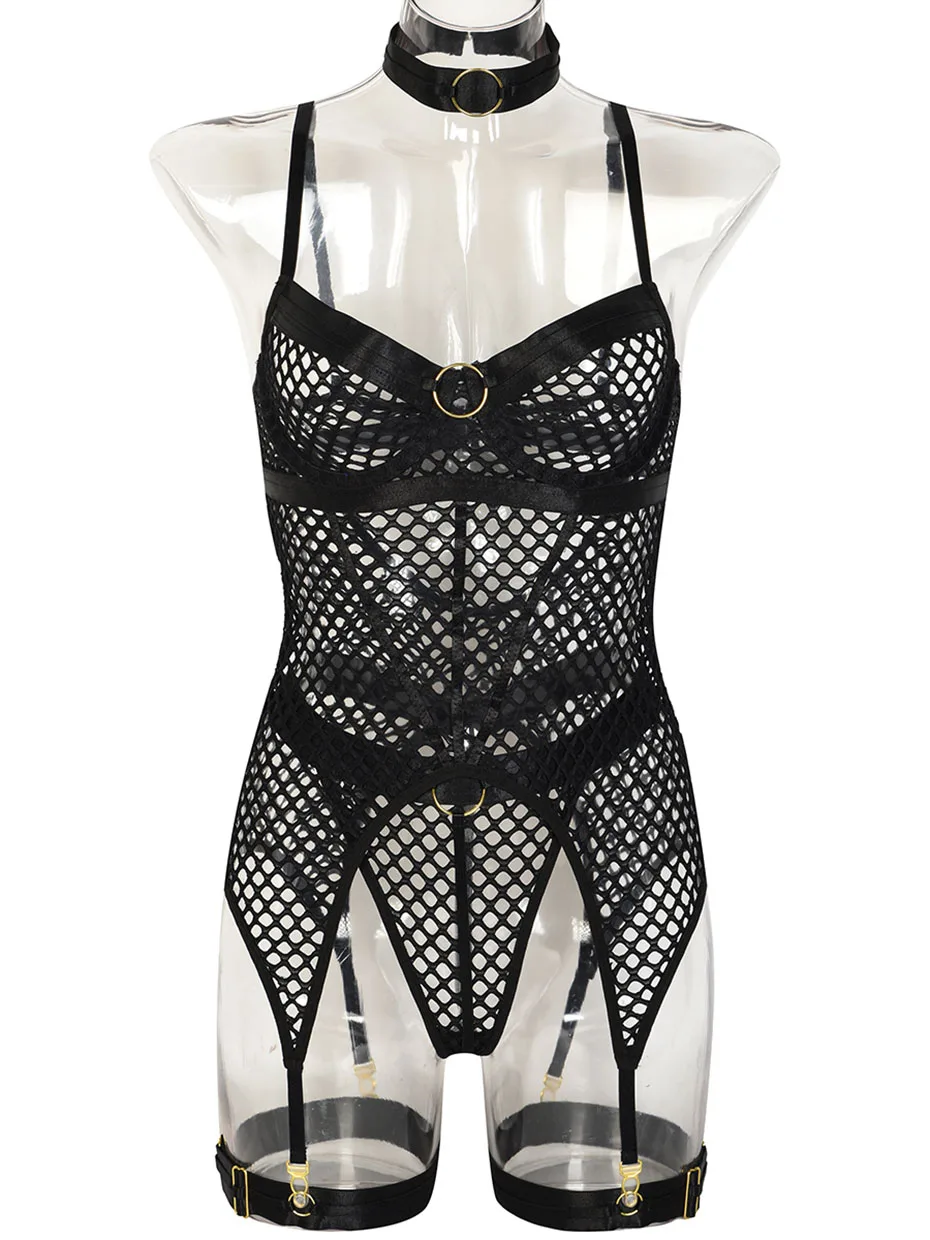 Conjunto de lencería sexy JSY para mujer, ropa interior corporal, camisón de malla transparente, ropa de dormir, lencería erótica, disfraces porno
