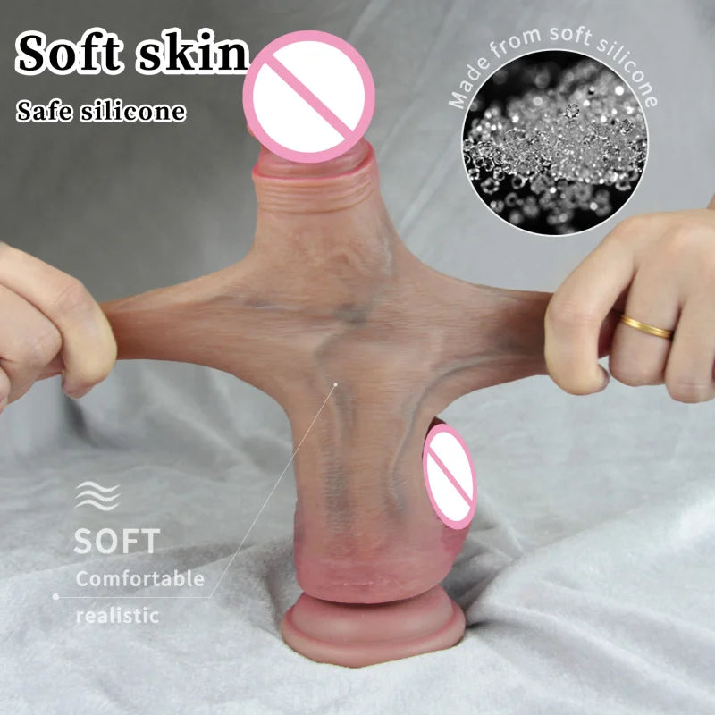 Consolador con correa para lesbianas, pene con chorros, prepucio deslizante, pene grande, consolador de silicona, juguetes sexuales anales para mujeres, masturbador para parejas