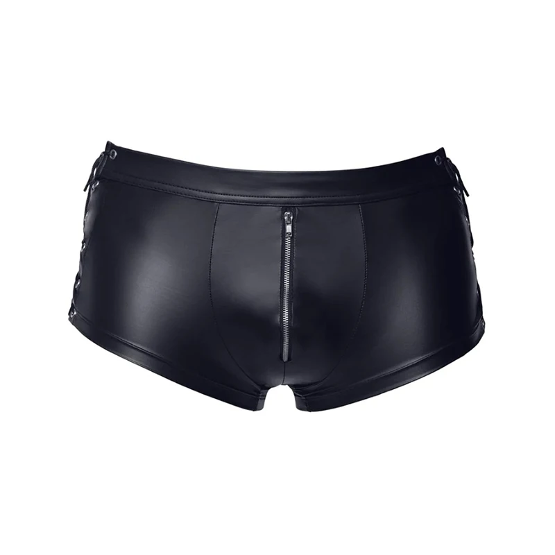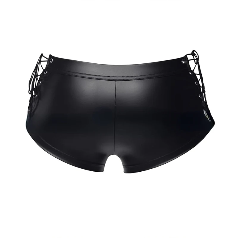 Calzoncillos bóxer sexys de PVC con aspecto mojado y charol brillante para hombre, con cordones laterales, pantalones cortos fetiche, tops, ropa interior, lencería