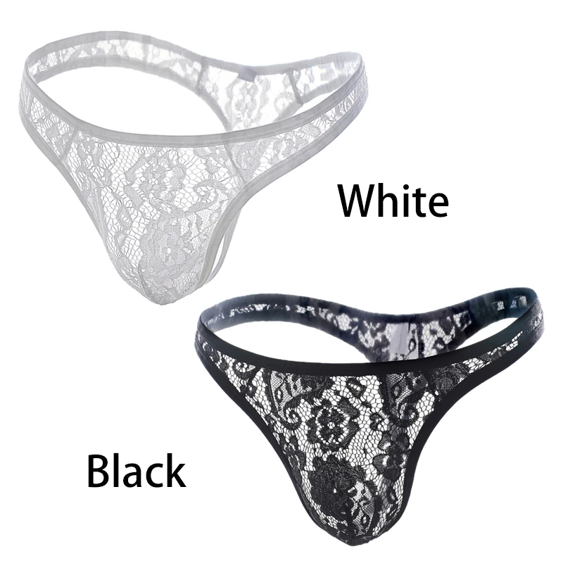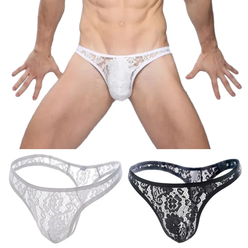 Tanga de encaje para hombre, ropa interior sexy, transparente, con bolsa en U, bragas eróticas