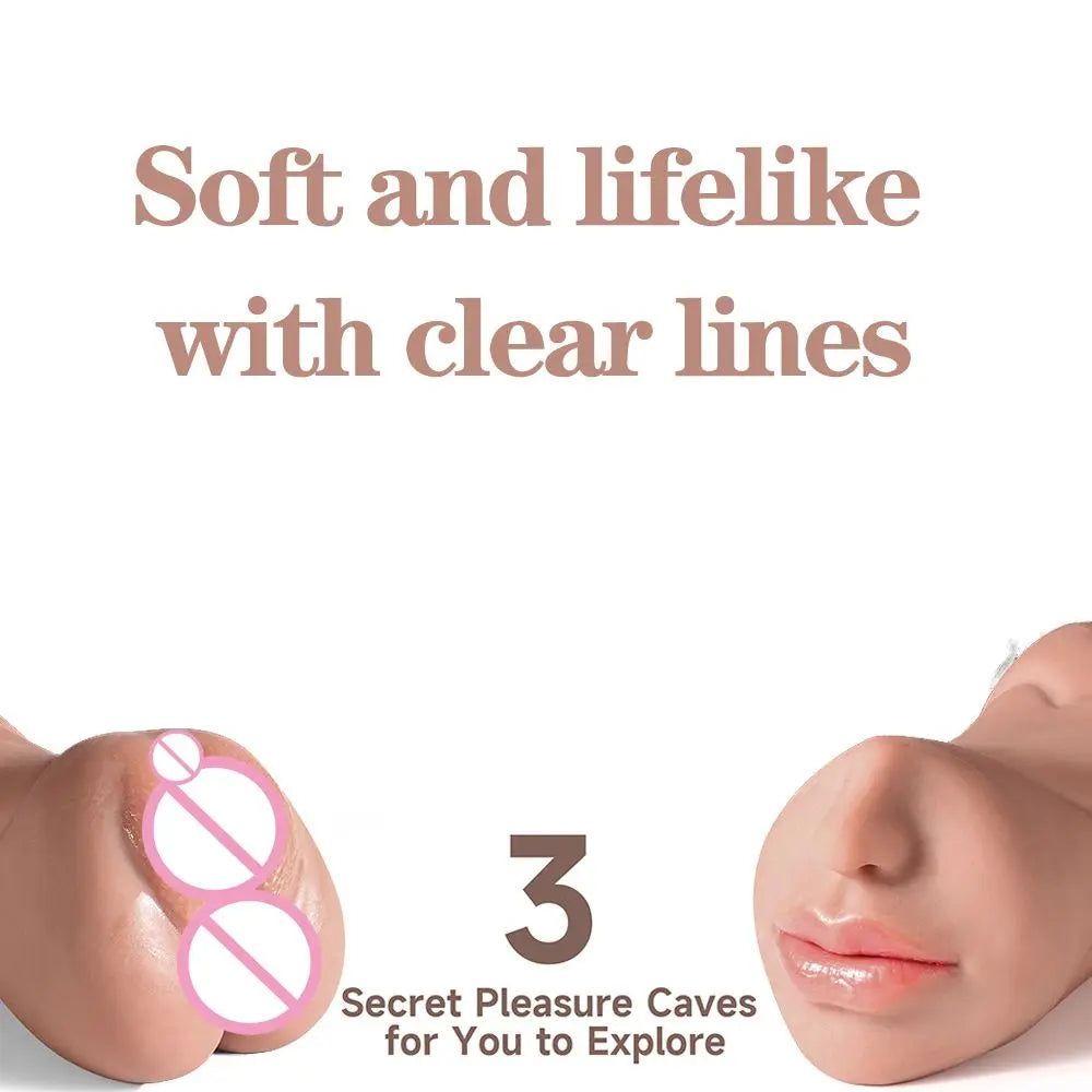 Masturbador masculino realista 3 en 1: A diferencia de la masturbación regular de un solo canal, nuestro masturbador masculino contiene 3 estructuras internas: labios sexys, vagina y ano apretado, que se pueden usar para sexo oral, vaginal y anal.