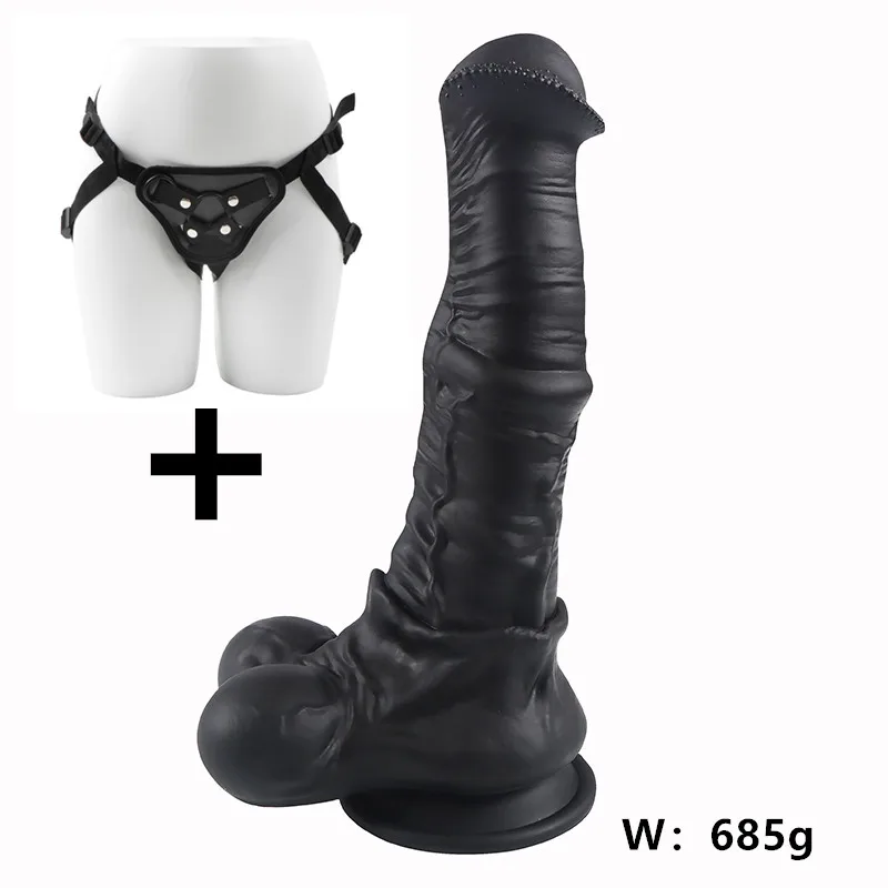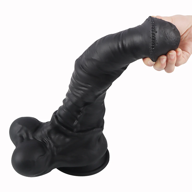 Consolador realista de caballo grande y suave, color negro, talla XXL, largo, para mujeres, adultos, juguete sexual para parejas, pene de silicona.