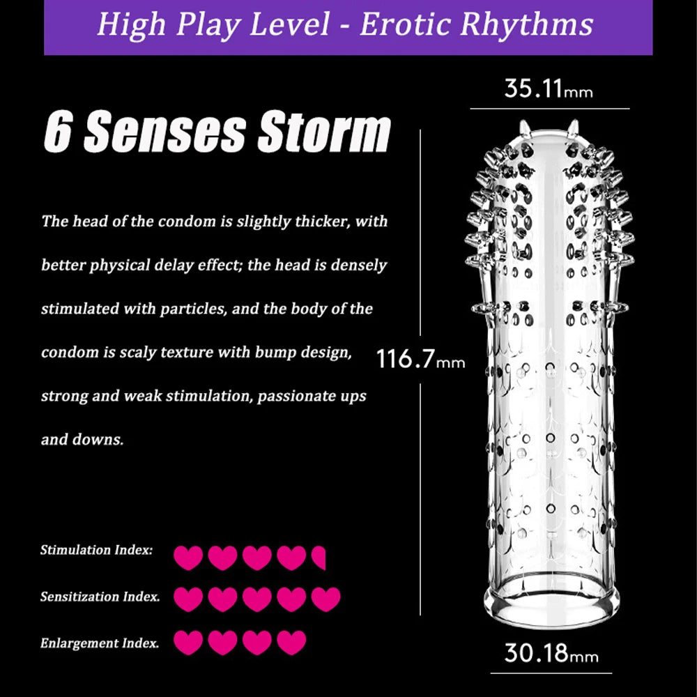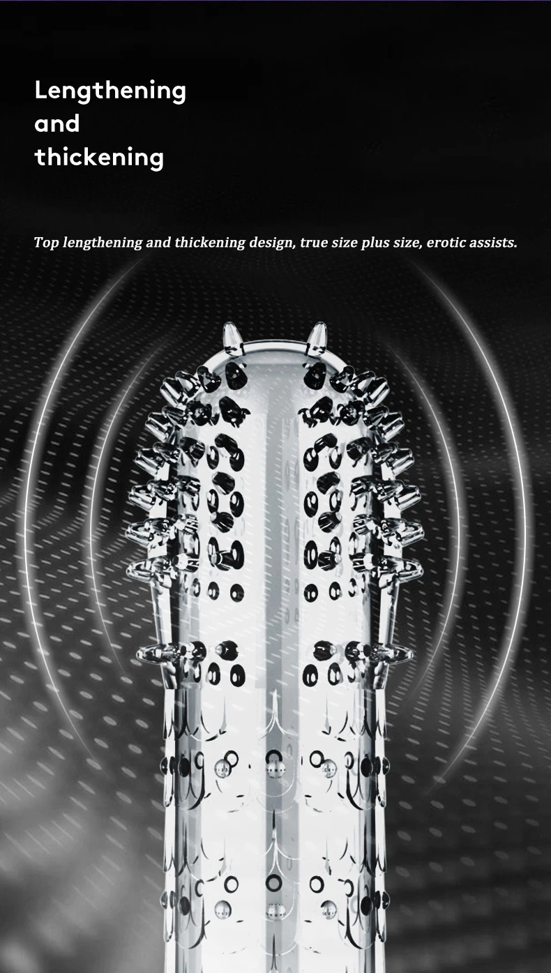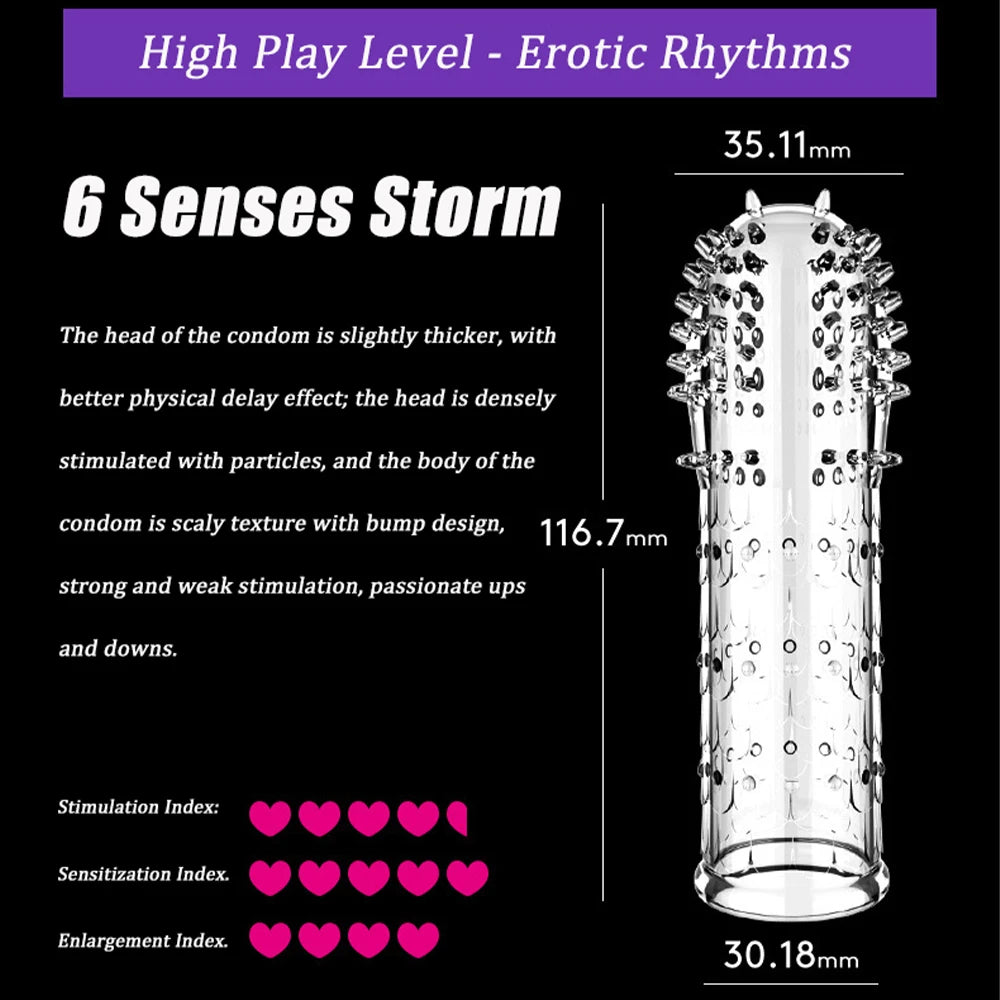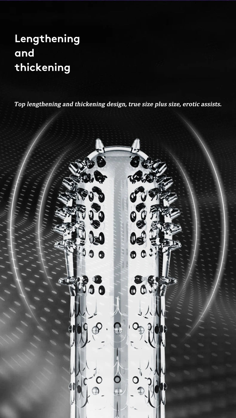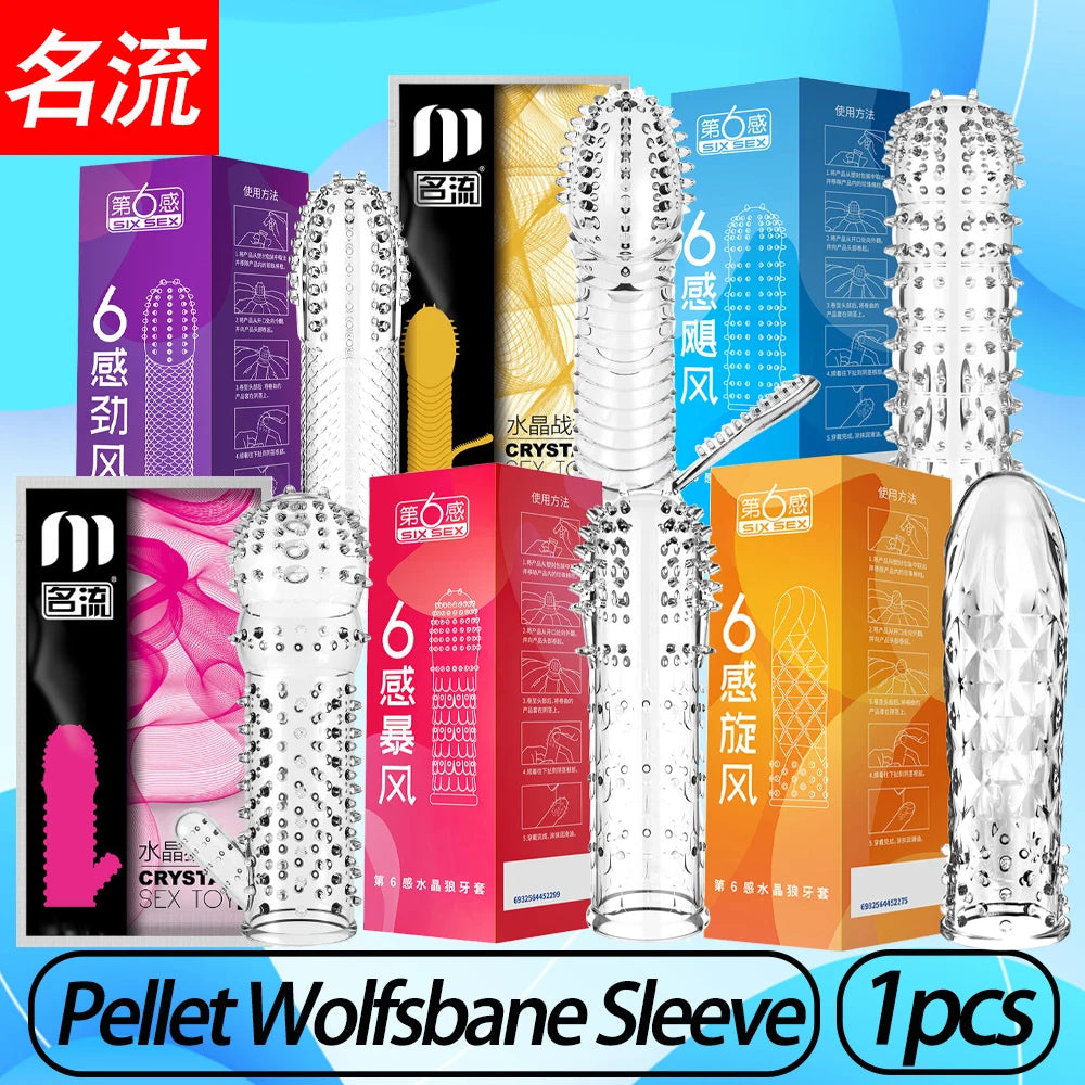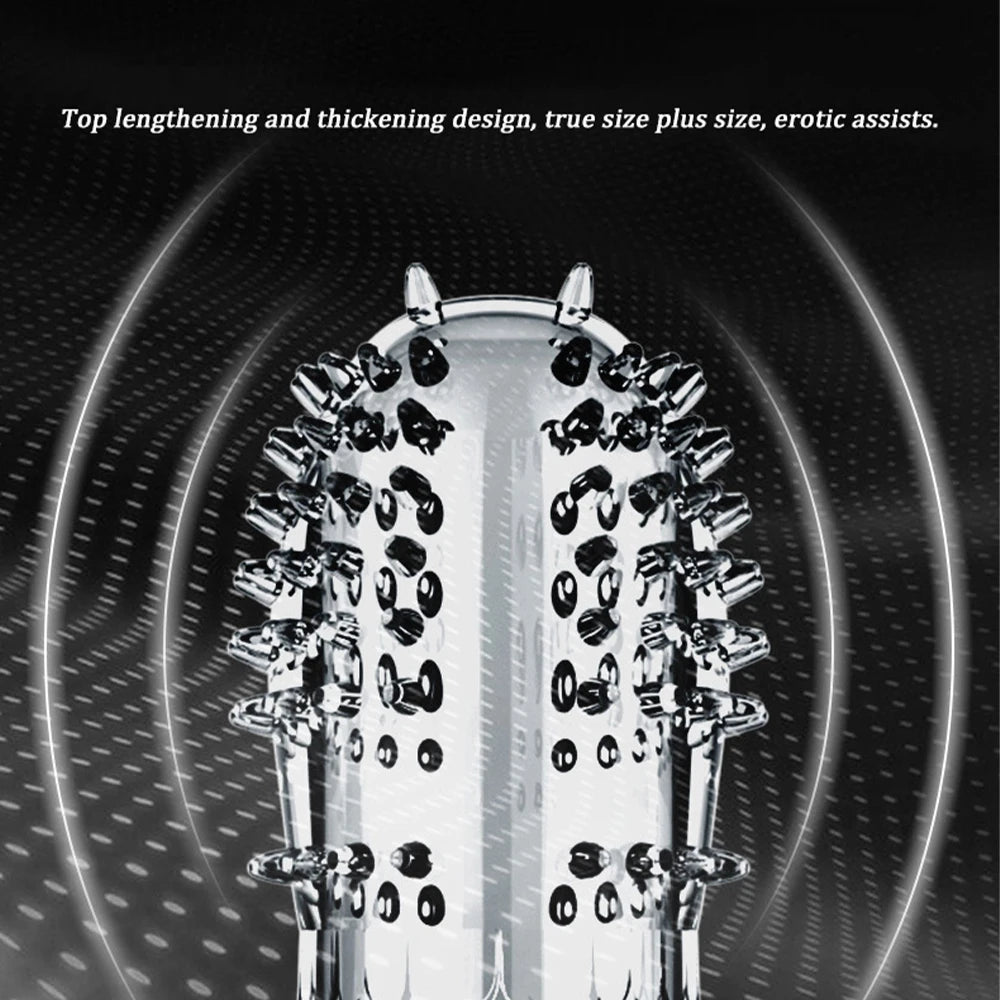 Condón Diente de Lobo Cristalino, Caja Individual, Gran Partícula, Funda para Pene, Anillo Extensor Reutilizable para Pene, Condones Eróticos para Hombres