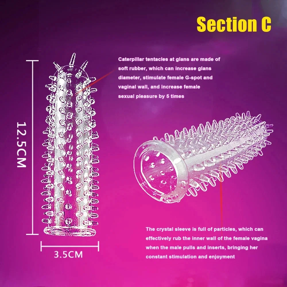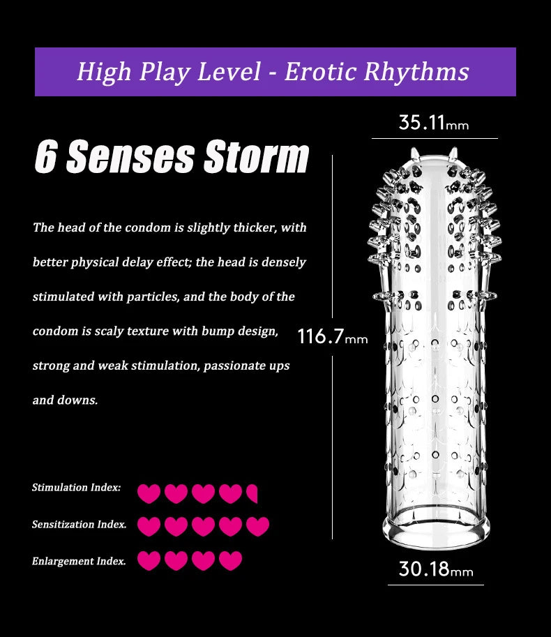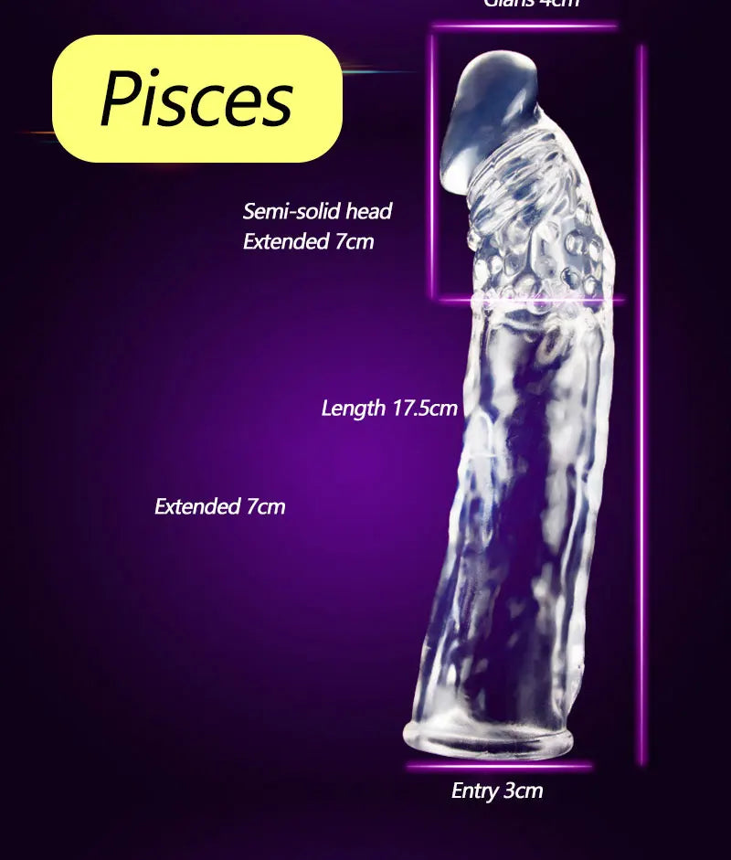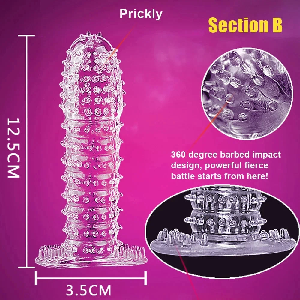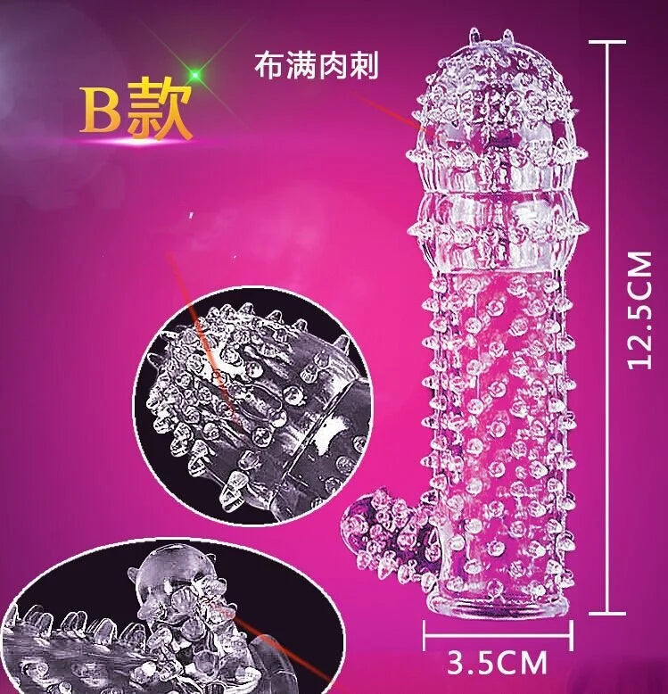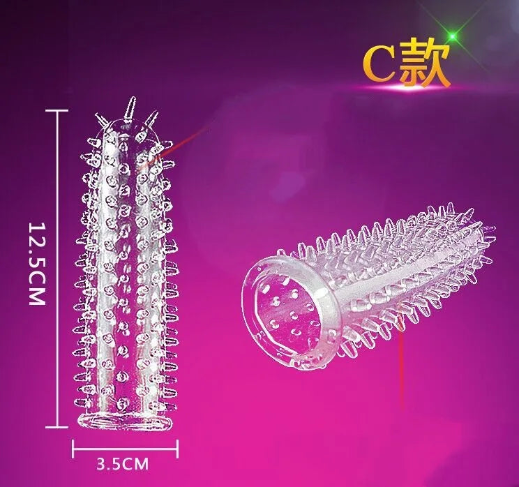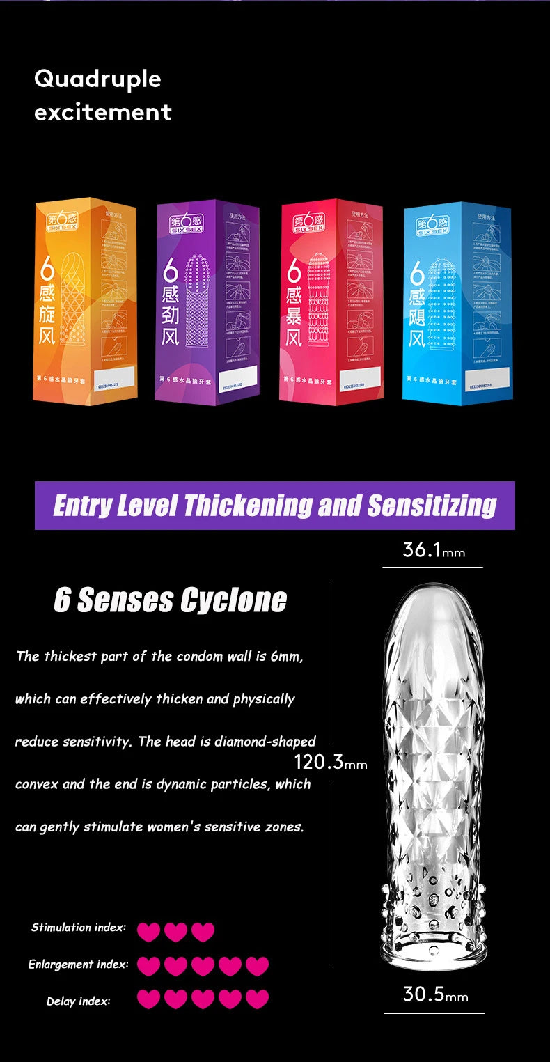 Condón Diente de Lobo Cristalino, Caja Individual, Gran Partícula, Funda para Pene, Anillo Extensor Reutilizable para Pene, Condones Eróticos para Hombres
