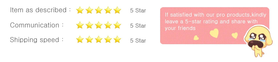 1.If you are satisfied with our products and services, please leave your positive feedback and 5 stars, and 5 stars for the detailed rating of your order. Once you show us the screenshot of both 5 stars, we will give you DISCOUNT for your next order.