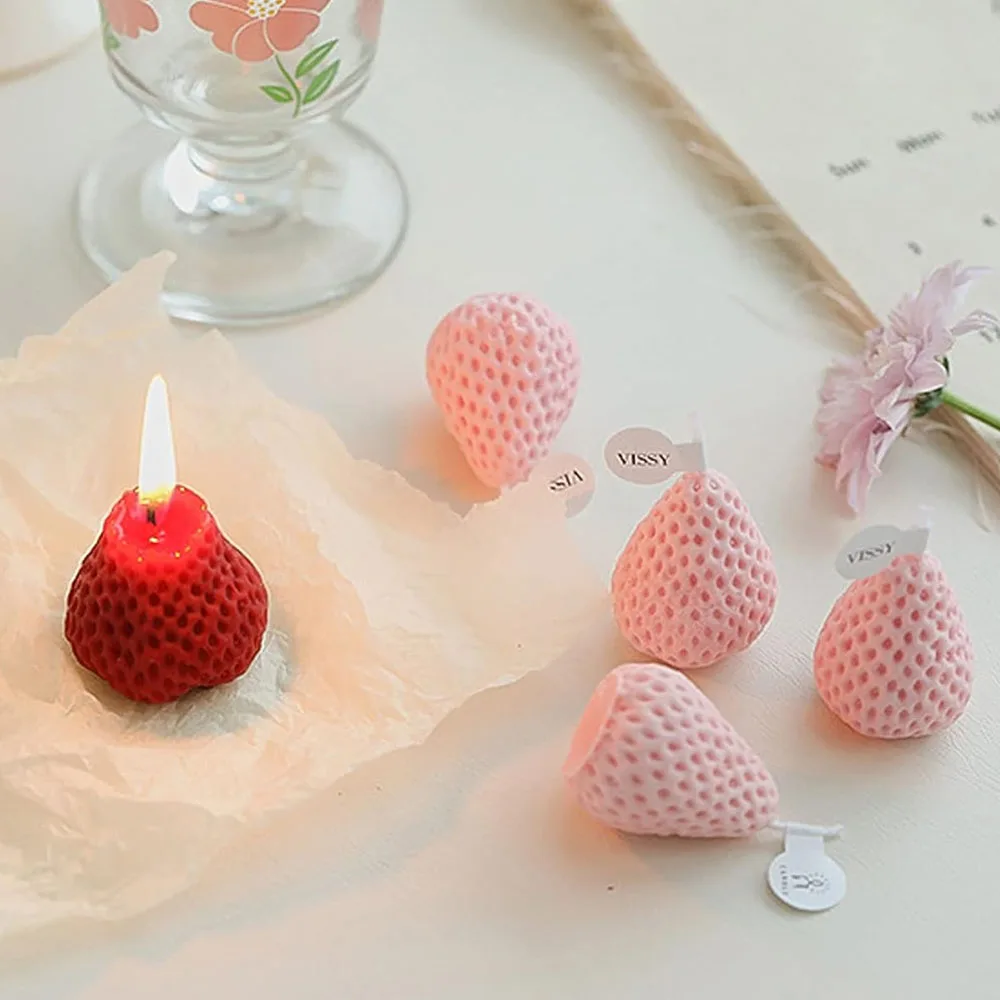 4pcs/set Romantic Candles Handmade Strawberry Cake Scented Candle Luxury Decoration Candle Birthday Decor Wedding Guest Gift