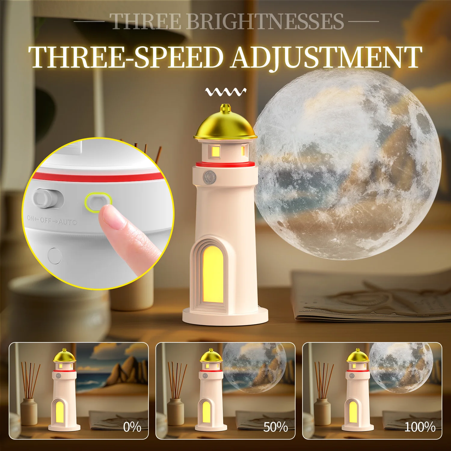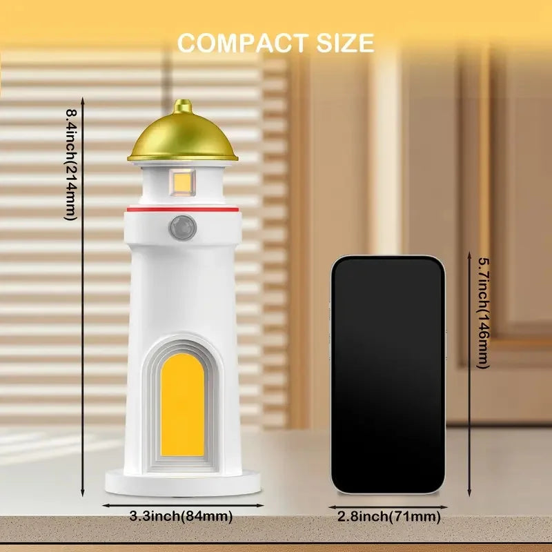 Romantic Moon Projection Motion Sensor Night Lights Lighthouse Ambient Lights Dimmable for Desktop Decor Light Christmas Gift